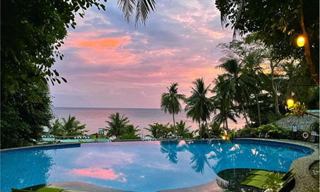 Amun Ini’s restaurant offers one of the most picturesque dining settings in Bohol, overlooking the infinity pool, white-sand beach, shimmering sea, and even Camiguin Island on the horizon. Guests can savor this breathtaking view in a relaxed, welcoming atmosphere while enjoying expertly prepared dishes paired with a curated selection of wines. The menu blends cherished family recipes with classic culinary techniques, all crafted using fresh, locally grown ingredients for an authentic taste of the region. Before or after dinner, unwind in the cozy lounge beside the dining area—a perfect spot to enjoy a drink and good company as you recount the day’s adventures.